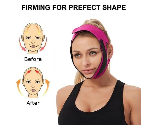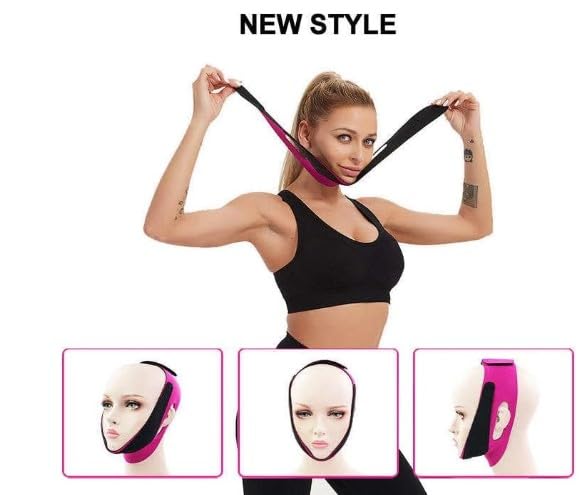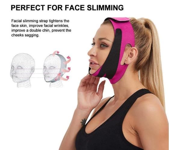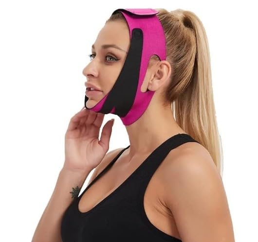 Generic - حزام تنحيف الوجه، شريط تخفيف الذقن المزدوج مع شريط فيلكرو قابل للتعديل، دعم ضغط وردي وأسود لرفع الوجه وتقليل التجاعيد