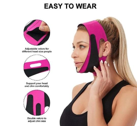 - تصميم متعدد الاستخدامات: يتميز حزام الوجه باللونين الوردي والأسود بمقاس قابل للتعديل للالتفاف بشكل مريح حول منطقة الوجه والذقن