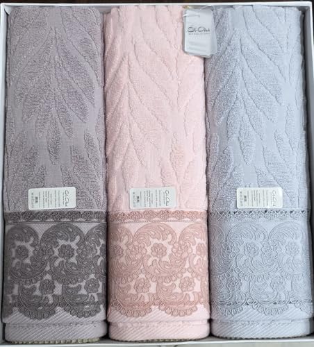 Generic - فوطة وجه نصف قطن كبيرة بشكير متعددة الالوان 3 قطع