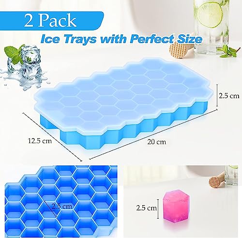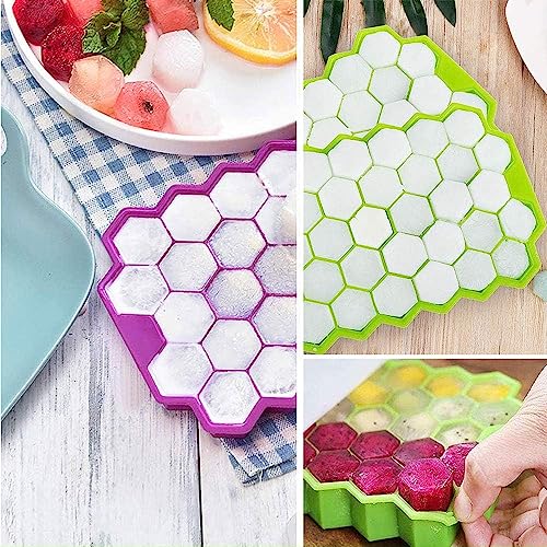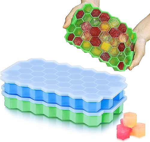 FACHOI - صينية مكعبات ثلج للفريزر بغطاء من فاتشوي، صينية مكعبات ثلج من السيليكون مع 37 شبكة وغطاء لصواني مكعبات الثلج الصغيرة، صينية ثلج سهلة الإزالة في حاويات منظمة، بار كوكتيل