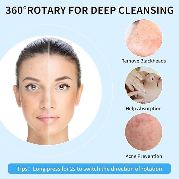 - قوة التنظيف العميق: قومي بإزالة الأوساخ والزيوت والمكياج بسهولة بحركة دوارة 360 درجة. قولي وداعًا للرؤوس السوداء وحب الشباب مع الحصول على بشرة ناعمة ومتوهجة بعد كل غسلة.