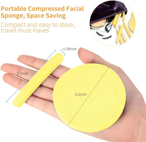 Generic - اسفنجات تنظيف الوجه للتنظيف، 48 قطعة من اسفنجات الوجه المضغوطة، اسفنجة دائرية لتنظيف الوجه، اسفنجة وجه قابلة لاعادة الاستخدام، وسادات ازالة المكياج، مستلزمات سبا تجميل محمولة للوجه، أصفر