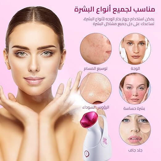 - فتحة المسام للتنظيف العميق: يعمل البخار اللطيف والمهدئ على فتح المسام، مما يسمح بإزالة الأوساخ والزيوت وبقايا المكياج بشكل أكثر فعالية، مما يترك بشرتك أكثر نعومة ونظافة.