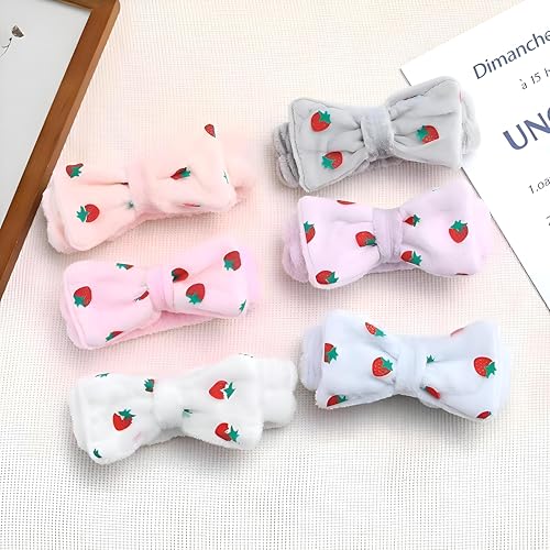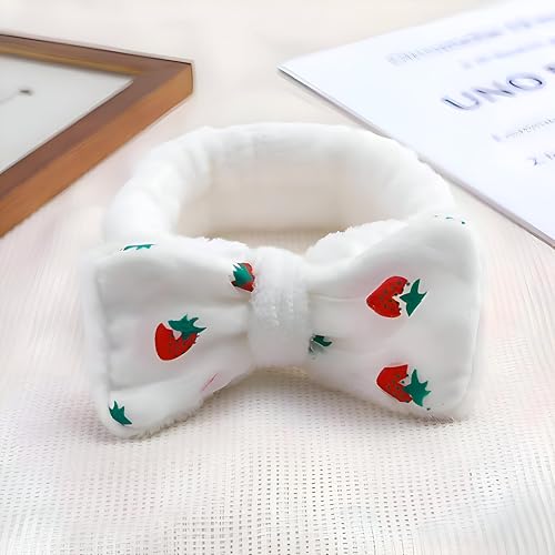 Generic - شريط راس للوجه - مادة مخملية ناعمة مع طباعة فراولة، فيونكة أنيقة، مثالية للمكياج والتنظيف والعناية بالبشرة، متوفرة بعدة خيارات من الالوان (ابيض)