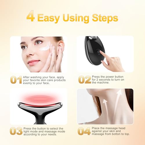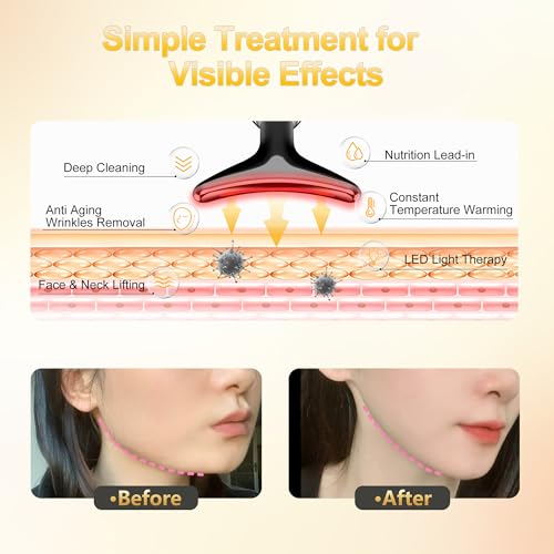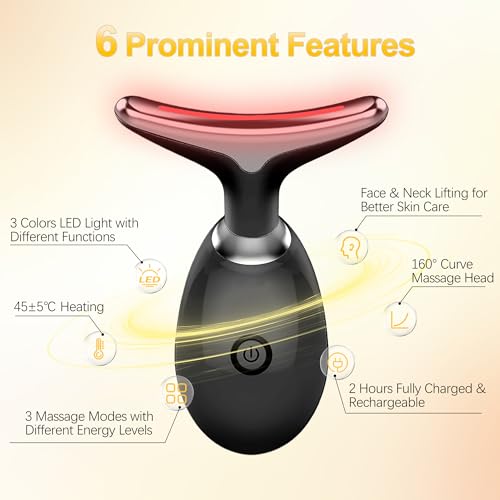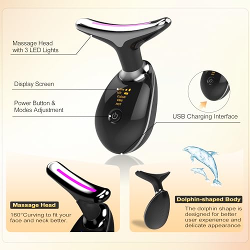MONMEIDE - جهاز تدليك الوجه ضد التجاعيد، جهاز تدليك الوجه بـ3 اوضاع لرفع الوجه ومكافحة الشيخوخة، جهاز كهربائي اي ام اس جوا شا 7 الوان، مصباح احمر بضوء احمر لتدليك الوجه بالحرارة (اسود)