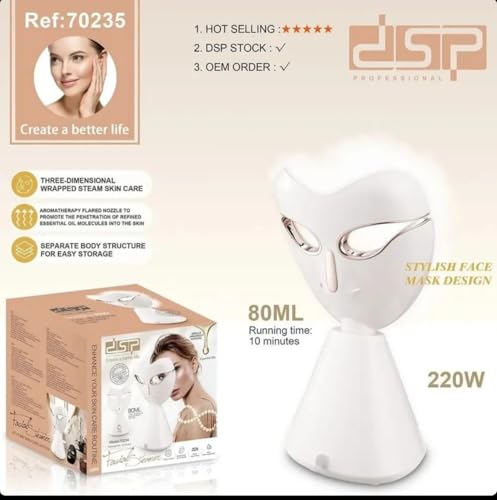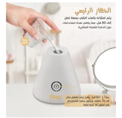 عام - جهاز بخار للوجه لمنتجعات الوجه - بخار ثلاثي الأبعاد يغطي الوجه بالكامل، للعلاج بالزيوت العطرية، خزان 80 مل، 220W، موديل: 70235.