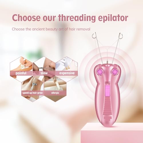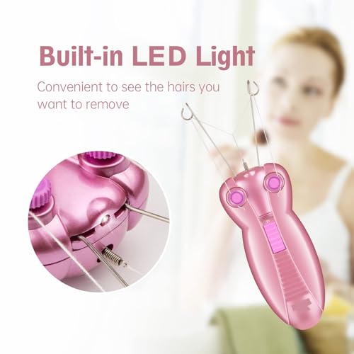 Excefore - جهاز إزالة شعر الوجه بالخيط للنساء، مزيل شعر كهربائي للسيدات، مزيل شعر الوجه للنساء بدون ألم، ماكينة إزالة الشعر بالخيط التلقائي للشعر الناعم على الوجه والذقن والشفة العليا، وردي