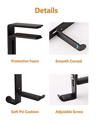 - 【جودة ممتازة】مصنوعة من مواد عالية الجودة من المعدن من أجل المتانة والإمساك الرائع، وجلد صناعي ناعم ومرن لحماية سماعات الرأس من الانبعاجات والعلامات، وسائد إسفنجية ناعمة لحماية طاولتك من العلامات والخدوش من قوة التثبيت.