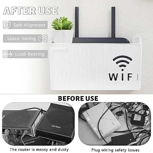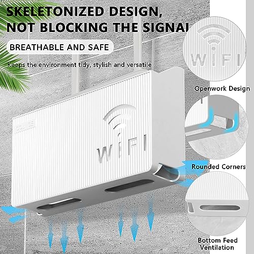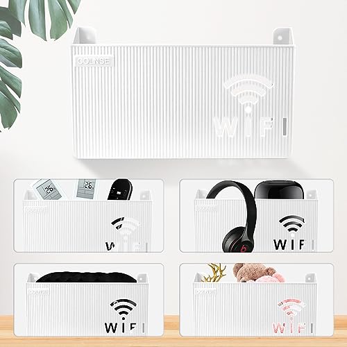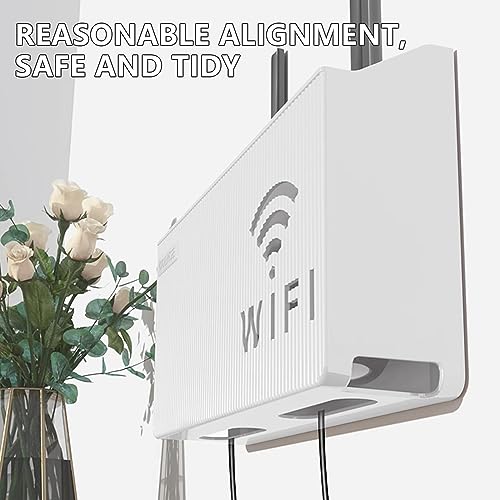 FAELNK - صندوق تخزين راوتر واي فاي من فايلنك يثبت على الحائط اخفاء كيبل التلفزيون رف ديكور للحائط لتنظيم كيبلات الراوتر ابيض، بلاستيك