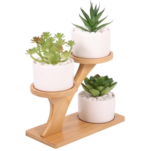 FAHAWEL - حامل نباتات عصارية لسطح الطاولة من فاهاويل، حامل نباتات من الخيزران لسطح المكتب لعتبة النافذة، حامل نباتات زهور صغير لطيف من 3 طبقات للنباتات الداخلية