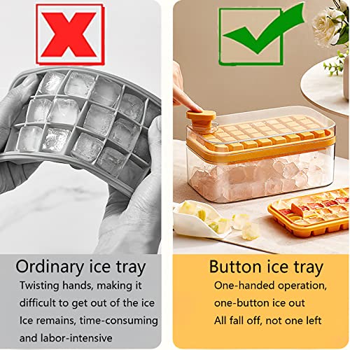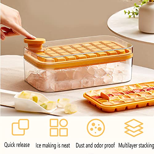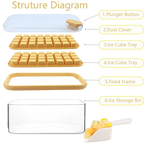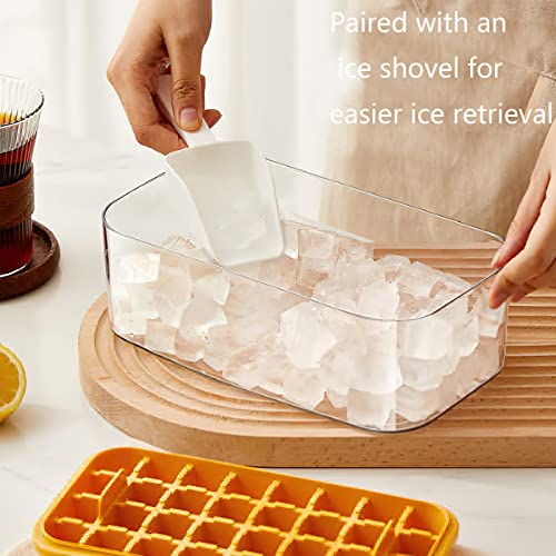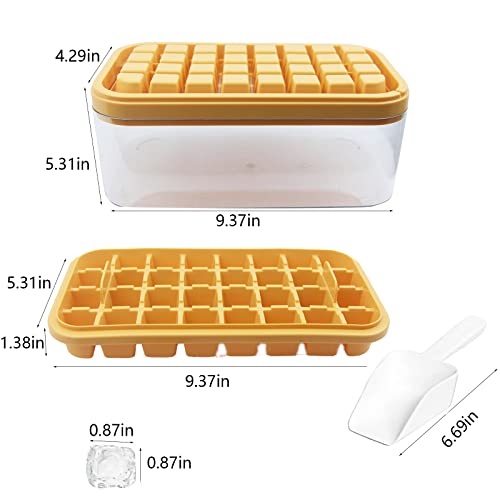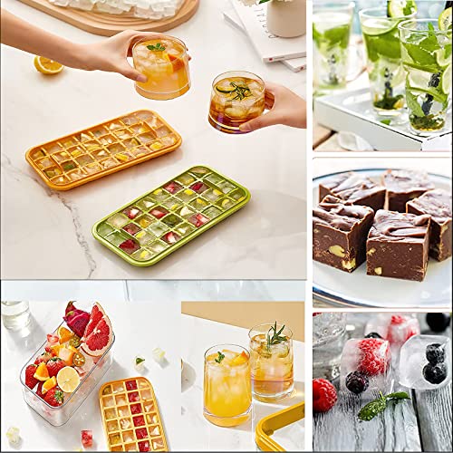 FAICOIA - صينية مكعبات ثلج مع غطاء وصندوق من فايكويا، قوالب مكعبات ثلج تحتوي على 64 قسم للفريزر، سهلة الفك وتتضمن حاوية وغطاء قابل للإزالة، صواني صنع الثلج للكوكتيل والمشروبات والقهوة، أصفر، قطعتين