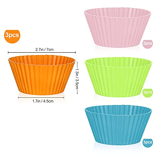- 【محتويات العبوة】 إجمالي 12 كوب، 12 مجموعة أكواب خبز دائرية من السيليكون، إجمالي مجموعة واحدة، 4 ألوان الأبعاد - القطر العلوي للقالب 7 سم، القطر السفلي 4.5 سم والارتفاع 3.5 سم.