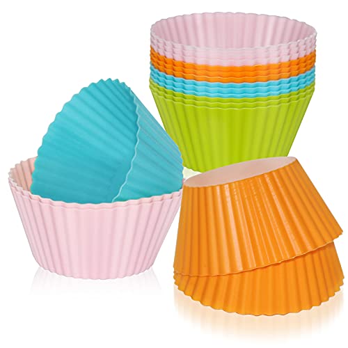 FAIHTS - قوالب خبز الكب كيك المصنوعة من السيليكون قابلة لاعادة الاستخدام بـ 4 الوان غير لاصقة للخبز والكعك والكريمات والبودينج، 12 قالب