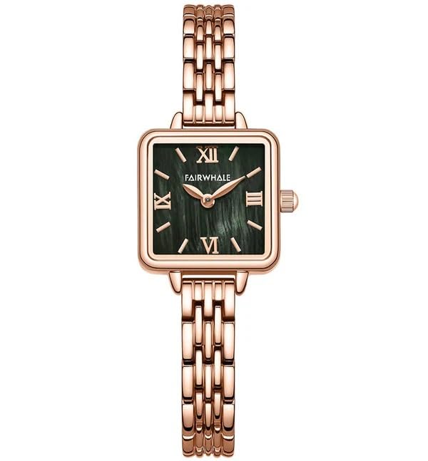 Fairwhale - ساعة ستانلس ستيل للنساء من فيرويل FW-3510-S3، مقاس 21 ملم، ذهبي وردي/اخضر، تناظري