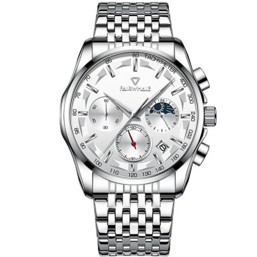 Fairwhale - ساعة ستانلس ستيل للرجال من فيرويل FW-5360-3، مقاس 40 ملم، فضي، تناظري