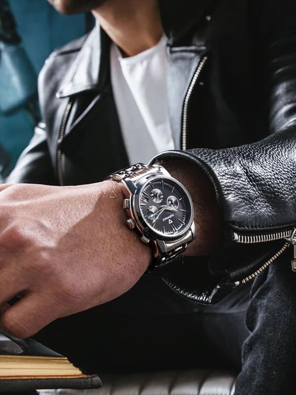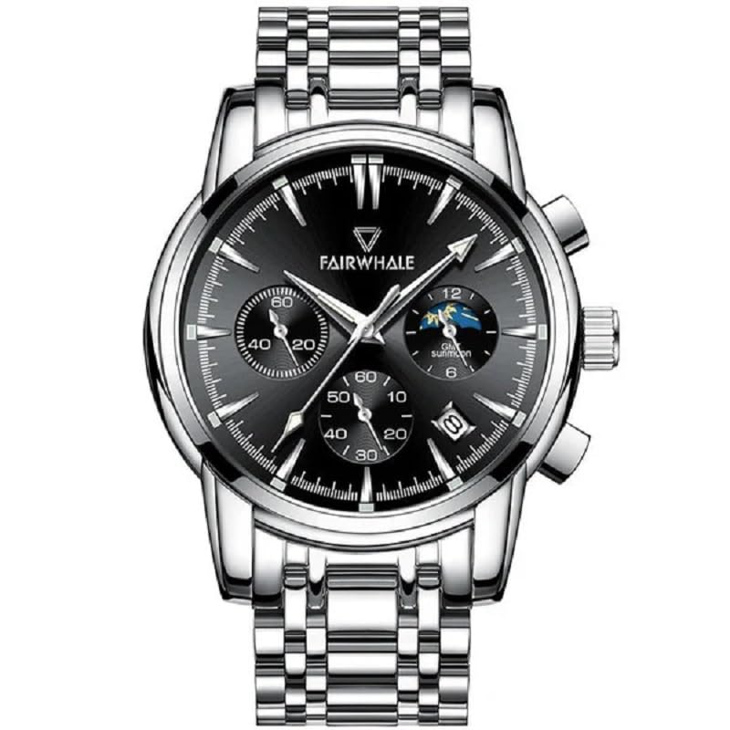 Fairwhale - ساعة ستانلس ستيل للرجال من فيرويل FW-5370-1، مقاس 40 ملم، فضي/اسود، تناظري