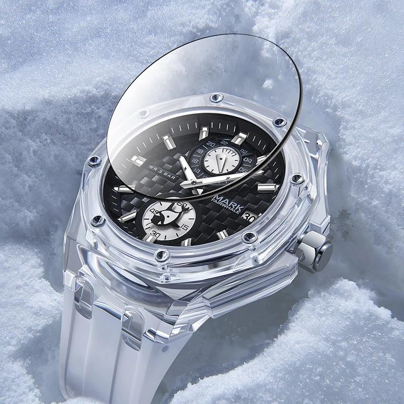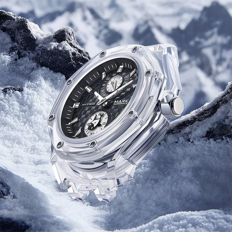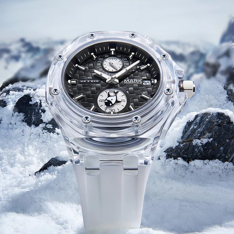 Fairwhale - ساعة بسوار مطاطي للرجال من فيرويل FW-5830-R1، مقاس 42 ملم، اسود/ابيض، تناظري