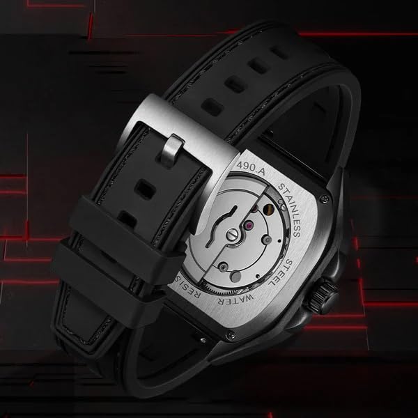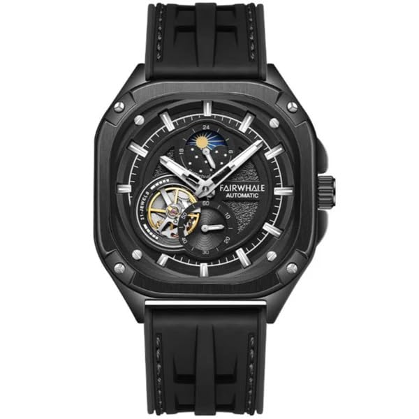 Fairwhale - ساعة مطاط للرجال من فيرويل FW-6490-R1، مقاس 41 ملم، اسود، تناظري