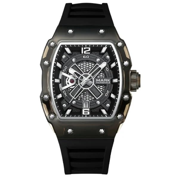 Fairwhale - ساعة بسوار مطاطي للرجال من فيرويل FW-6810-R2، مقاس 43 ملم، اسود/اسود، تناظري