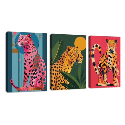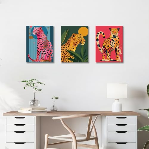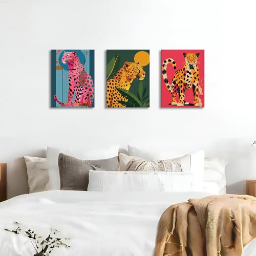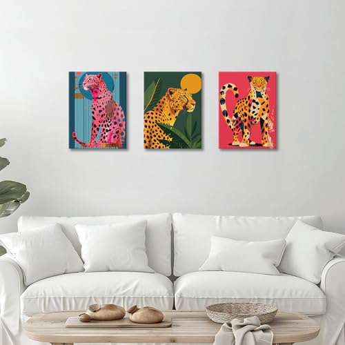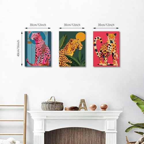 - 【3 قطع فنية جدارية】 تأتي العبوة مع لوحة عصرية ملونة بطبعة جلد الفهد، كل لوحة 12 انش × 16 انش (30 × 40 سم).