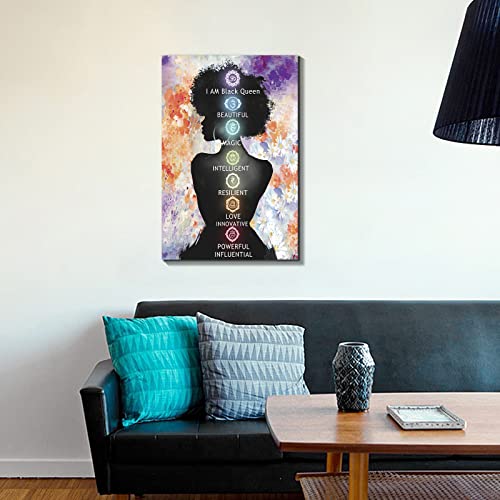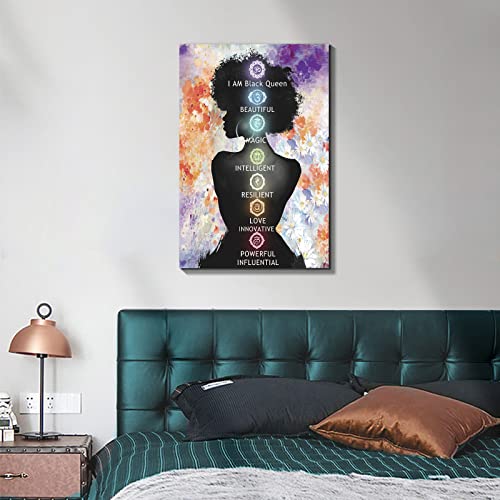 FajerminArt - لوحة فنية جدارية بشكل فتاة سمراء، لوحة ملهمة لأفريقية أمريكية تصور ملكات ونساء، ملصق مطبوع على قماش بحجم (40.64 سم × 60.96 سم) لتزيين غرفة المعيشة وغرفة النوم وديكور المنزل، بدون إطار من فجر مينت ارت
