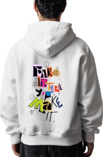 Generic - FAKE IT. TILL YOU MAKE IT كنزة ذات قبعة ظهر أبيض