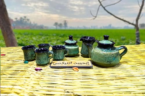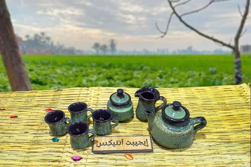 Egypt Antiques - طقم شاي فخر مكون من 7 قطع (براد - السكر - 4 فقان) صناعة مصر يدوي 100% من انتاج مصر أنتيكس