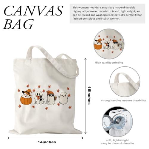 Sldpngo - شنط قماشية للخريف والهالوين، شنطة يد كبيرة توت من القطن قابلة لاعادة الاستخدام، شنط بقالة للتسوق في سوق الخريف، هدية حفلات الحصاد للنساء