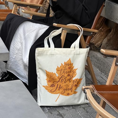 TiTkaiVi - شنطة يد كبيرة توت من القماش الكتاني بتصميم مستوحى من كتاب الكتاب المقدس الخريف للام والفتاة وزميلة العمل والاخت وزميلة العمل، ديكورات عيد الشكر المسيحية، شنطة حمل قماشية بنمط الخريف للتسوق والشاطئ