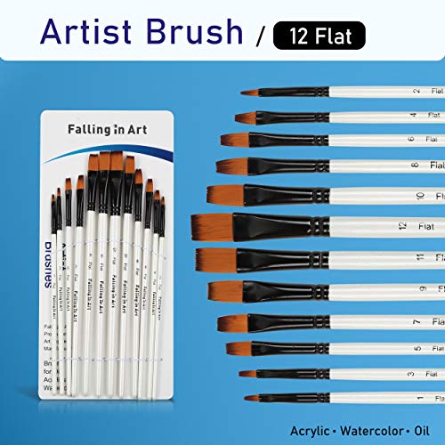 Falling in Art - مجموعة فرش رسم احترافية مسطحة من النايلون للالوان المائية/الزيتية/الاكريليك/زينة الوجه والجسم والاظافر/الحرف اليدوية/تلوين الصخور 12 قطعة من فالينج ان ارت