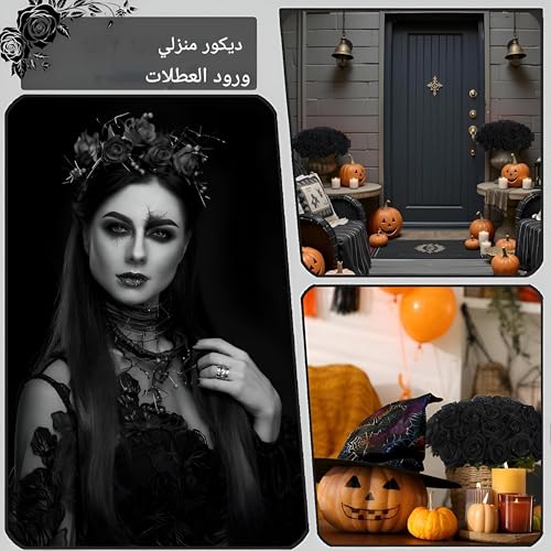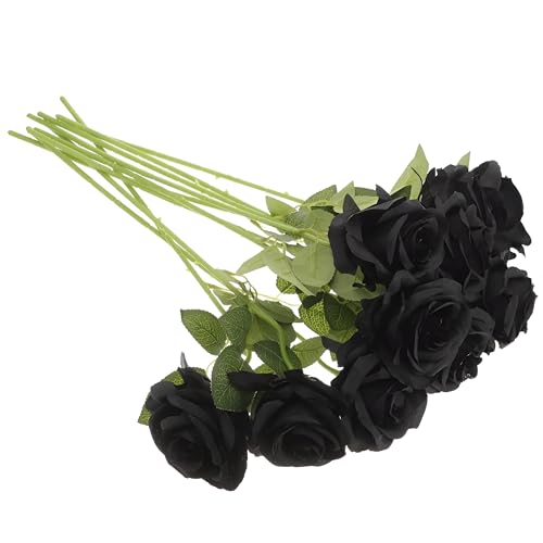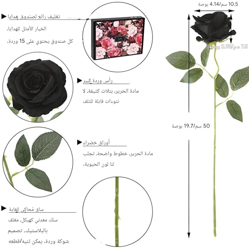 Generic - ورود صناعية - ورود مخملية سوداء عالية الجودة مع عصي طويلة مثالية لتزيين حفلات الزفاف وتزيين المنزل وترتيبات المناسبات الخاصة (5 قطع)