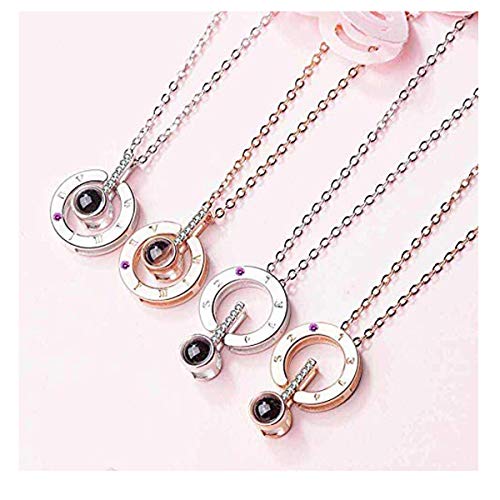 Famalo - قلادة الحب من الفضة الاسترليني عيار 925 بـ100 لغة فامالو الذهب 14 قيراط للنساء ذهبية وردية لحبيبك فضي فضة استرلينية