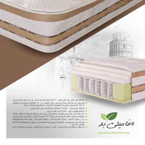 Family Bed - Family Bed - مرتبة بيزا من إسفنج الذاكرة بسوست منفصلة من فاميلي بد، مقاس 1.15 م × 1.95 م × 33 سم