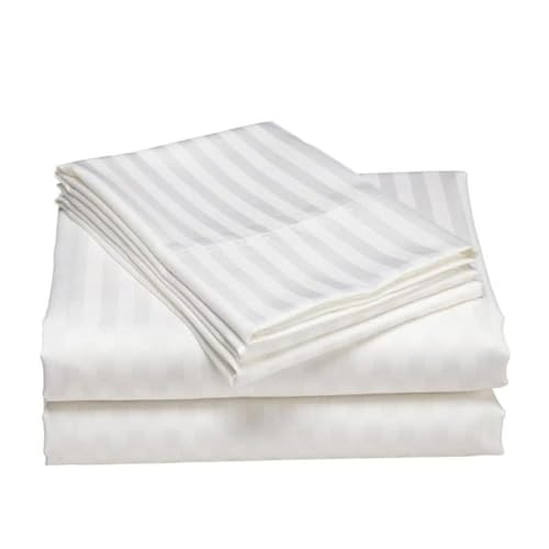 Family Bed - Family Bed - طقم ملاية بأستك مخططة بلون موحد من فاميلي بيد (اوف وايت، 120 × 200)، الألياف الدقيقة، هندسي، أبيض