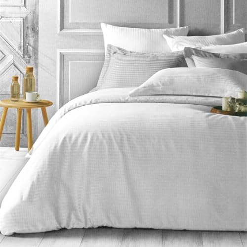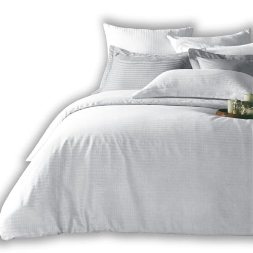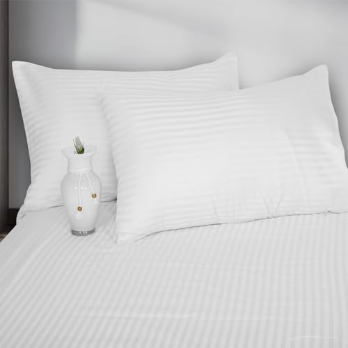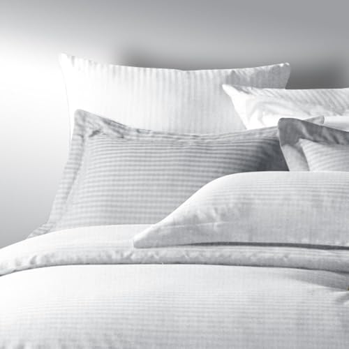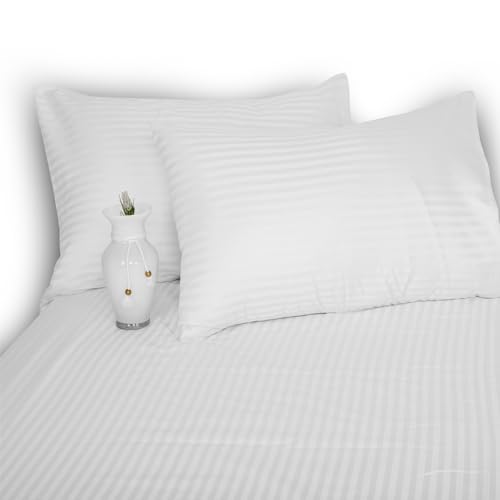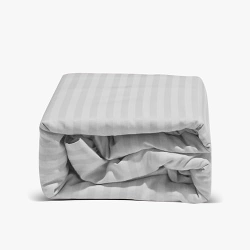 Family Bed - طقم ملاية ستيك بتصميم مخطط ولون سادة من فاميلي بيد (ابيض، 180 × 200)، قطن، 180x200