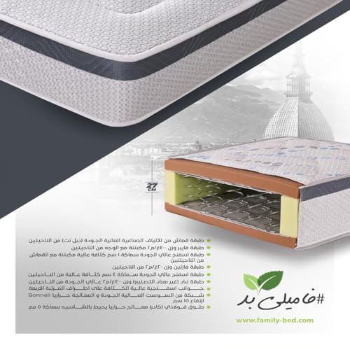 Family Bed - Family Bed - مرتبة تورونتو بسوست متصلة من فاميلي بيد، مقاس 1.55 م×1.9 م×28 سم