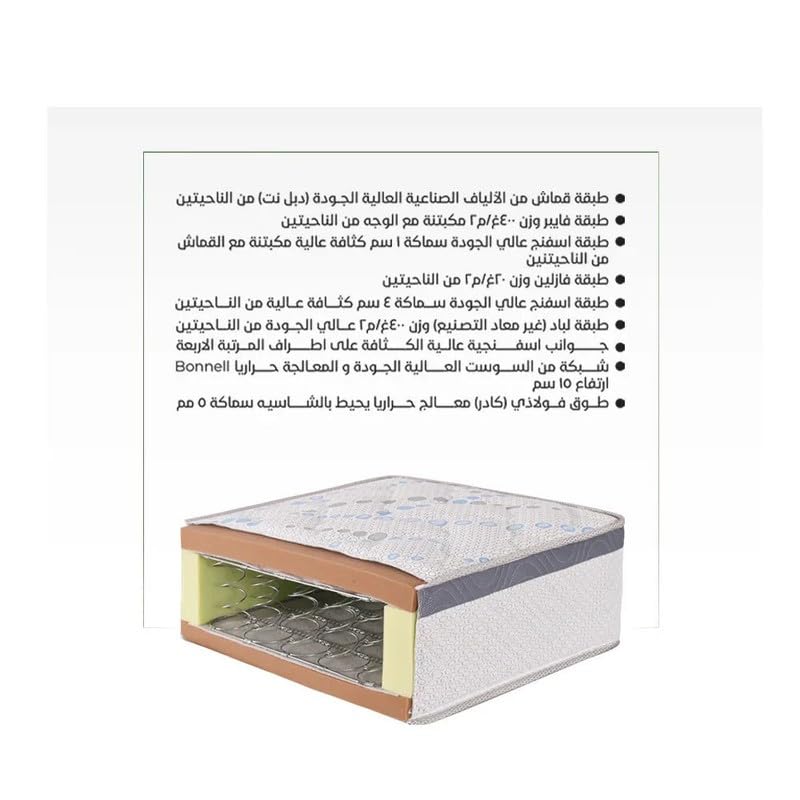 - دعم زنبركي موثوق به من بونيل: يوفر نظام زنبركي بونيل المتين والمعالج بالحرارة دعمًا كلاسيكيًا وثابتًا عبر المرتبة بأكملها.