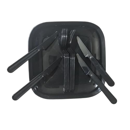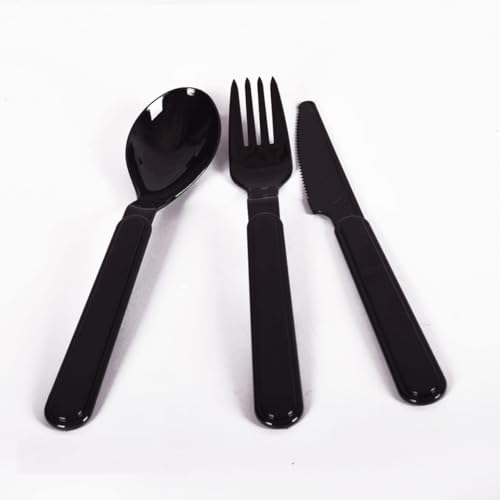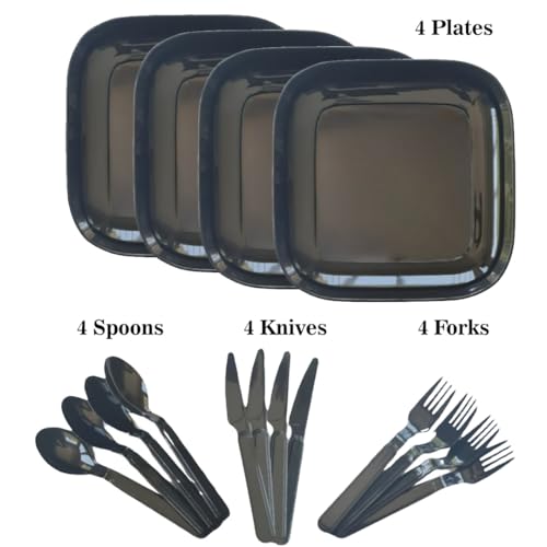 Generic - طقم أدوات مائدة من البلاستيك مع أدوات تناول الطعام، مجموعة من 4 قطع، تتضمن طقم أدوات مائدة (ملعقة وشوكة وسكين)، إجمالي 16 قطعة (أسود)