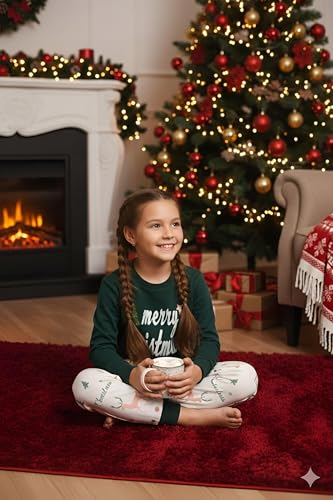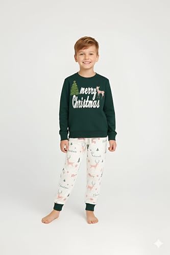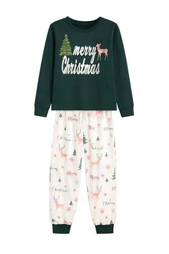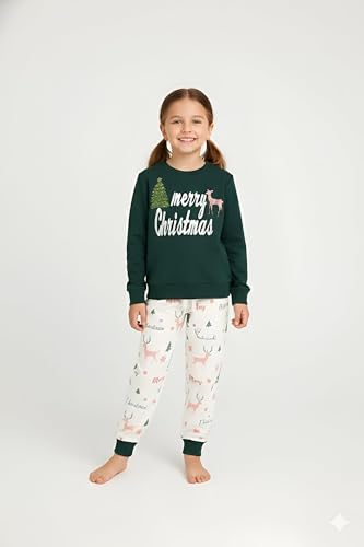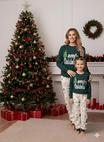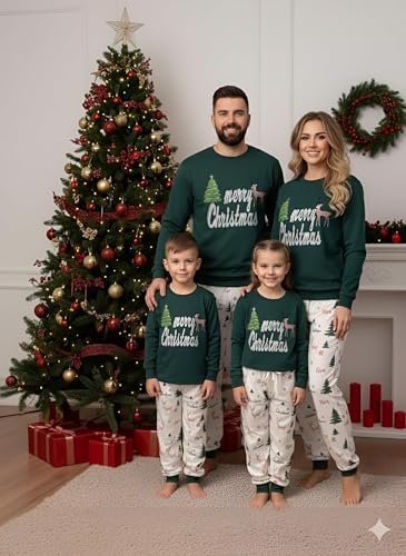 Generic - بيجامات عائلية - طقم بيجامة مريحة للكريسماس لجميع أفراد العائلة، بلوزة خضراء مع طباعة عيد ميلاد سعيد وشورتات بيضاء تعرض نمط احتفالي، مثالية لمشاركة أمسيات العطلات معًا