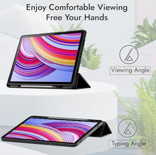 - تصميم ثلاثي الطي وحامل قلم: استمتع بتصميم قابل للطي مريح الاستخدام، يوفر زوايا عرض وكتابة قابلة للتعديل، مما يجعله رائعًا للعمل والتصفح والوسائط المتعددة لتابلت ريدمي باد برو 12.1. يأتي مع حامل قلم مدمج لحمل قلم ستايلس بأمان.