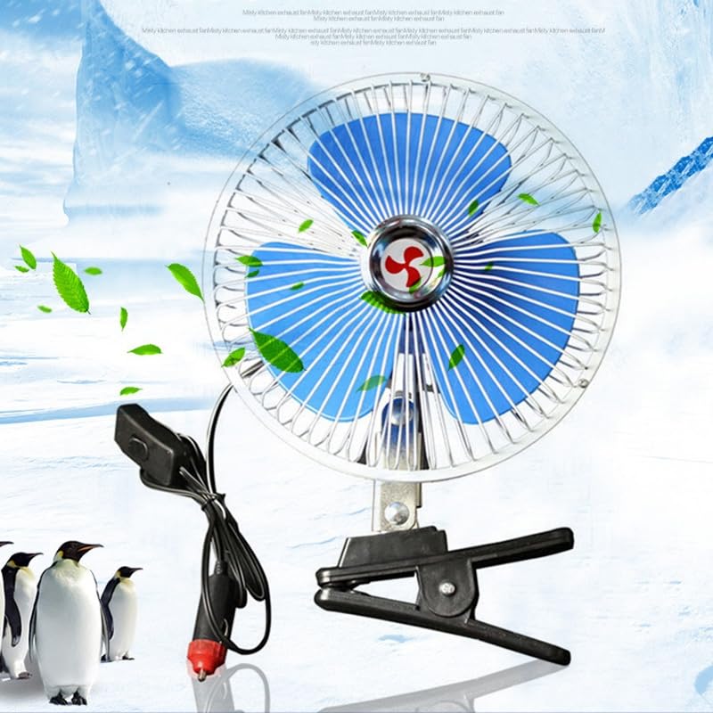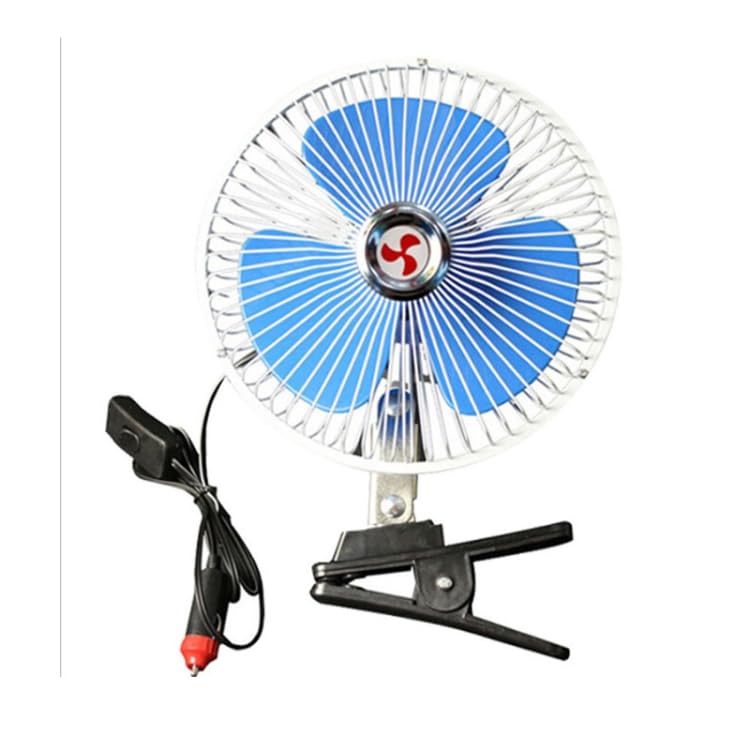 Generic - مروحة 8 بوصة ازرق في ابيض بمشبك وزر تشغيل على ولاعة السيارة 12 فولت