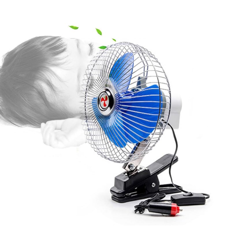 - مروحة 8 بوصه ازرق في ابيض بالمشبك وزرار للتشغيل تعمل على ولاعة السيارة 12 فولت