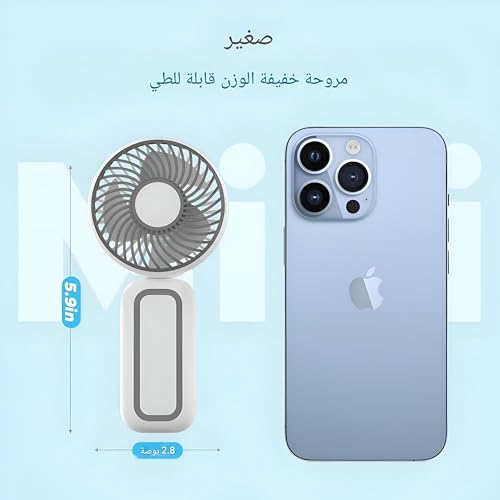 - يبلغ مقاسها 7.87 سم × 15.24 سم × 3.81 سم فقط وتزن 159 جم فقط، هذه المروحة خفيفة الوزن وتنزلق بسهولة في شنطتك. تصميمها المحمول يعني أنه يمكنك دائمًا اصطحابها معك، سواء كنت تستمتع بيوم على الشاطئ أو تحتاج إلى الراحة في المنزل.