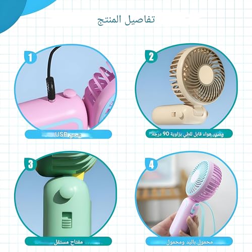 - ابق منتعشًا في أي مكان مع المروحة المحمولة المدمجة المصممة لمساعدتك على التغلب على حرارة الصيف. هذه المروحة هي الرفيق المثالي للتبريد أثناء التنقل، مما يجعلها مثالية للسفر أو المغامرات الخارجية أو الاسترخاء في المنزل.