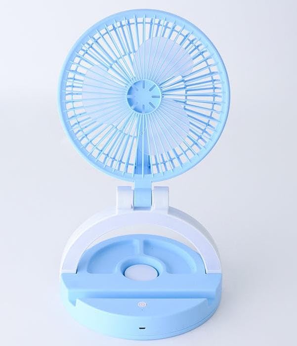 Generic - مروحة مدمجة محمولة قابلة للطي مع إضاءة ليد، قابلة للتعديل بـ 3 سرعات، تدفق هواء قوي، مروحة كهربائية صغيرة موفرة للطاقة، تصميم قابل للطي، لون أزرق