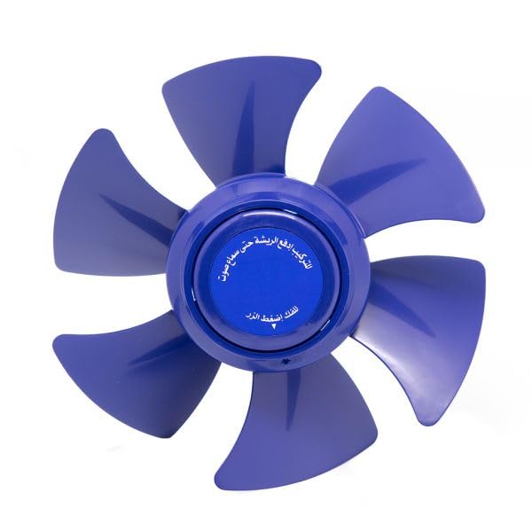 - التصميم: تتميز بتصميم بستة شفرات باللون الأزرق لتوفير دوران فعال وتدفق هواء قوي