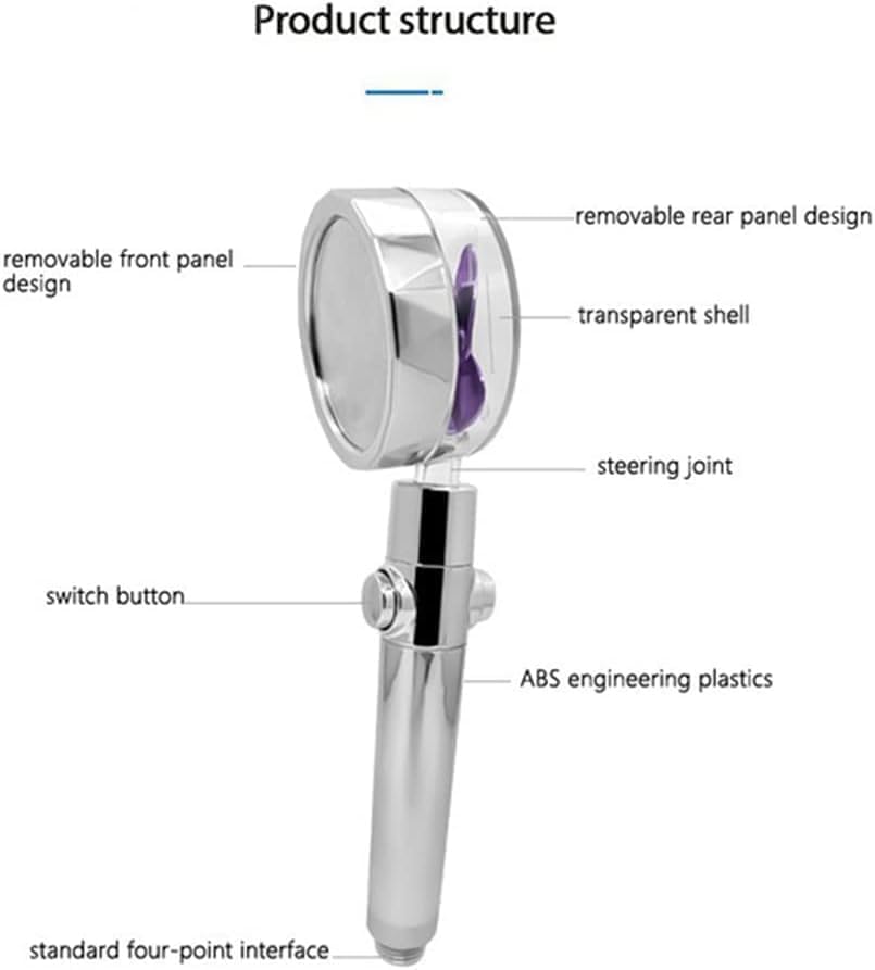 Generic - رأس دش بمروحة، رأس دش محمول باليد بمروحة توربيني وعالي الضغط وسهل التركيب يدور 360 درجة