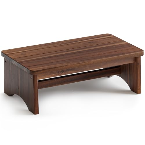 FANATU - كرسي صغير للحمام خشبي متين وعريض للغاية مقاس 66 سم مصمم للبالغين وكبار السن يتميز بقدرة تحمل وزن يصل إلى 249 كجم ومزود بقضبان متقاطعة معززة وسطح مقاوم للانزلاق من فناتو (خشب الجوز)