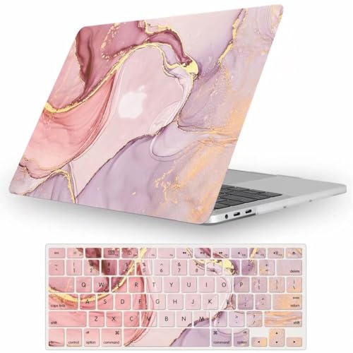 Fancity - جراب موديل A2941 من فانسيتي لجهاز ماك بوك اير 15 بوصة بشريحة M2 2023، جراب صلب من البلاستيك المطاطي مع غطاء لوحة مفاتيح لجهاز ماك بوك اير 15.3 بوصة مع خاصية التعرف باللمس وشاشة ريتينا، وردي رخامي