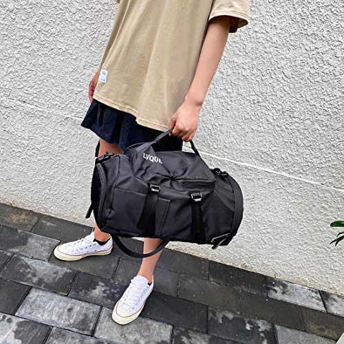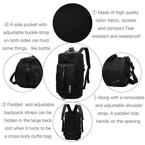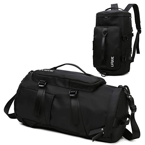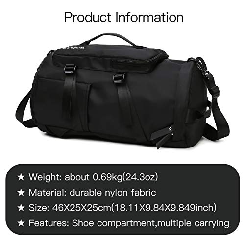 fancyfree - شنطة ظهر للسفر متعددة الاغراض من فانسي فري دفل رياضية كبيرة مع جيوب احذية فردية مناسبة للرجال والنساء 315 أسود نايلون